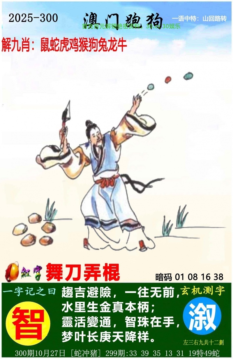 | 300期 | 蛇羊鼠马 | 中:1肖 |