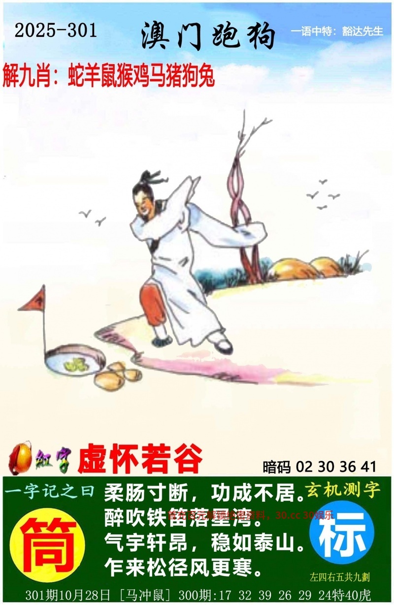 | 301期 | 牛鸡猴兔 | 中:3肖 |